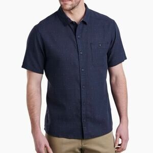 - KUHL Men's XXL Intrepid Skorpio Short Sleeve Linen Cotton Shirt Northern Star Blue -