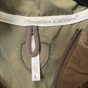 KUHL Mountain Culture Vest Women's Olive Green Large Hood Zip Up Outdoor hiking
