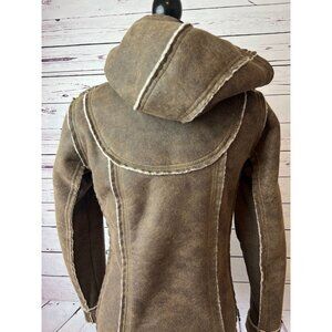 KUHL Projekt Dani Sherpa Jacket Lined Coat Faux Leather XS Extra Small Hooded