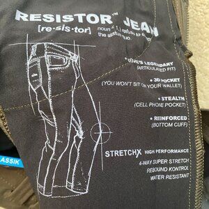 NWT KUHL Resistor Jean Klassik Fit Super Stretch Water Resistant Black Moss 30x34