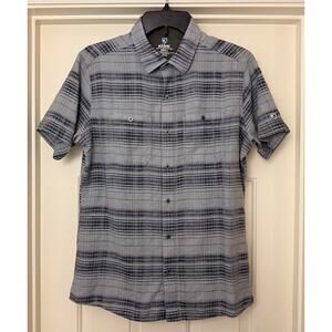 KUHL Skorpio Shirt Men’s Small Gray Plaid Linen Blend Short Sleeve Outdoor. Excellent Preowned Condition.