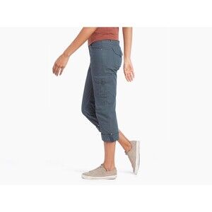 Nice women's Kuhl Splash Roll Up Cargo pants in size 14. There is a small tear on the right leg by the knee. Also the bottoms have a little fraying on the edges. I've attached pictures to show. Please see pictures for measurements.