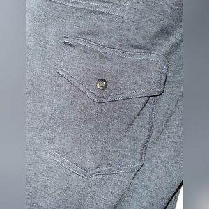 Pre-owned and in great condition. Please note that the drawstring is missing. Super soft, stretchy, and comfy. Features cargo pocket on left side.