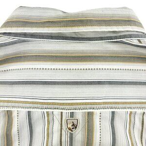 KUHL Suncel Shirt Men's XL Button Up Short Sleeve Striped Hiking Metal Buttons