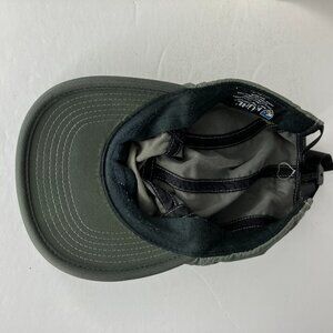Color is between a gray and green. In good condition but does show light wear, marks, piling on sweatband.