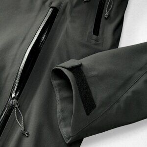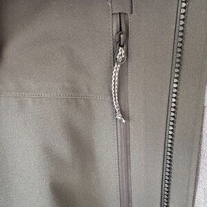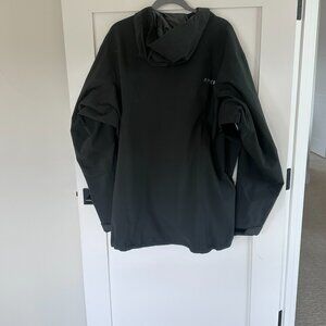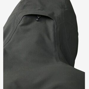Like New. Durable and performance jacket. Features a hood and pit zips. Ideal for all occasions. Color is closer to Dark gray/green.