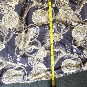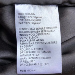 100% Silk outer. Lined. Missing a belt that came with it. Excellent condition. Pattern is exquisite.
