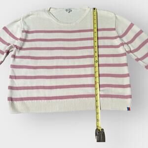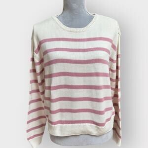 KULE Striped Organic Cotton Sweater Pink White Long Sleeve Size Large
