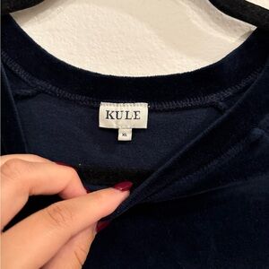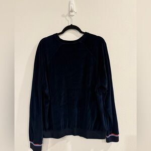 Elegant navy velour sweater by KULE. Features stylish stripe cuffs.