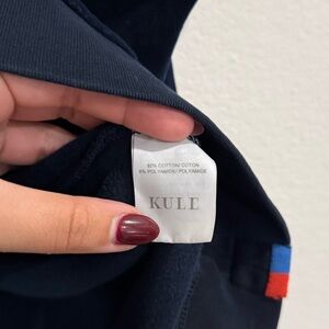KULE The Velour Franny Sweater In Navy with Stripe Cuffs