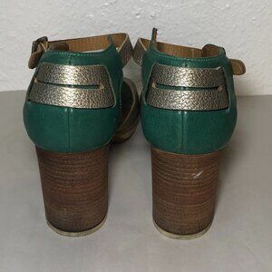KUPURI Heels Women's Size US7.5 Green Silver Anthropologie Peep Toe Slingback