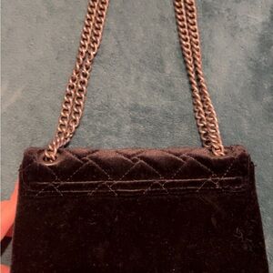 Stylish black shoulder bag adorned with colorful embellishments. Perfect for adding a pop of color to any outfit.