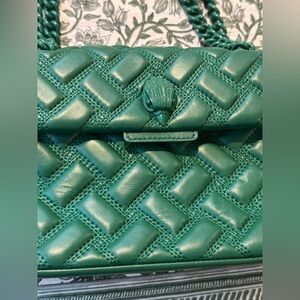 KURT GEIGER LONDON Kensington Drench Green Leather Shoulder Bag EUC