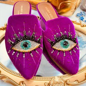 🆕 KURT GEIGER LONDON 🧿 NWOT Olive Evil Eye Mules, Purple Lyst