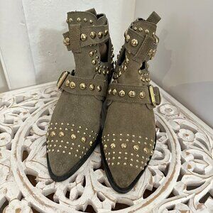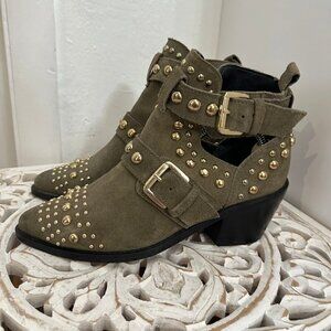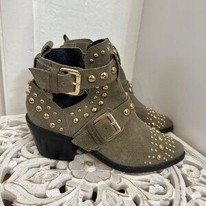 Sybil Studded Block Heel Ankle Boots in olive green khaki
