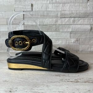 KURT GEIGER Mayfair Black Quilted Leather Ankle Strap SANDALS Black NEW Size 36