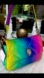 Bold rainbow hues and geometric quilting make this shoulder bag a standout way to accessorize any look.