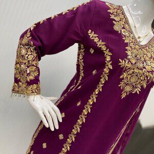 •GEORGETTE WITH SEQUENCE EMBROIDERY WORK AND GOLDEN SEQUENCE LACE
