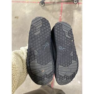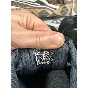 Keywords: Kuru, Chicane, women's sneaker, black suede, trail hiking, outdoor activities, athletic shoe, lace-up, durable outsole, activewear, pre-owned, size 9.5, EU 40.5, rubber outsole, lace-up closure.