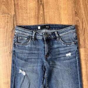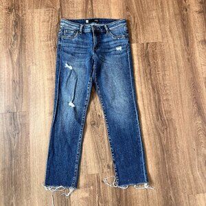 KUT Ankle Straight Raw Hem Distressed Denim Jeans Sz 2