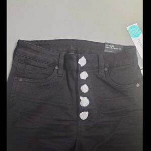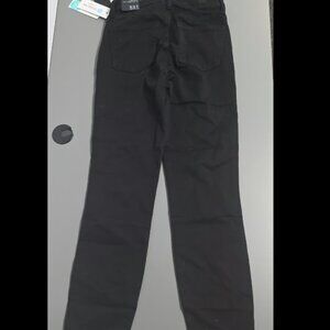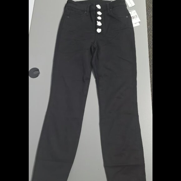 Color and Material: Solid black wash in a classic denim fabric (likely a cotton blend with stretch for comfort and recovery, based on the brand's typical constructions). The dark hue gives a polished, versatile vibe that pairs well with everything from boots to heels.
