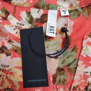 KUT FROM THE KLOTH Coral Floral Blouse Top Plus Size 2X Summertime Loose Comfy