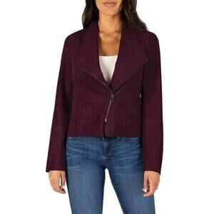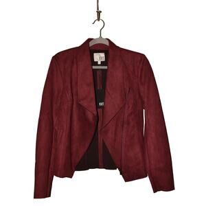 KUT FROM THE KLOTH NEW $89 Carina Faux Suede Drape Moto Jacket Wine Medium