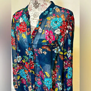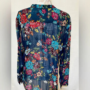 KUT FROM THE KLOTH Navy floral sheer long sleeve top size XL.