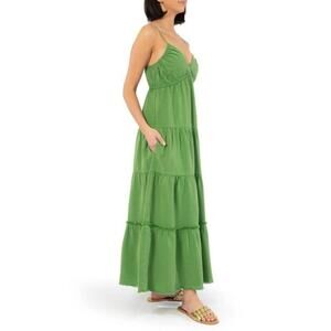 KUT FROM THE KLOTH Women's Green V-Neck Thea Tiered Ruffle Maxi Dress Size XL