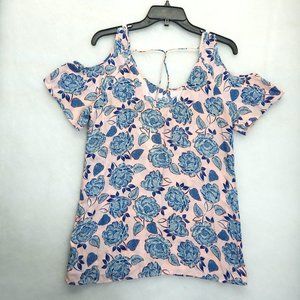KUT From The Kloth Cold Shoulder Floral Top Size M Pink Blue