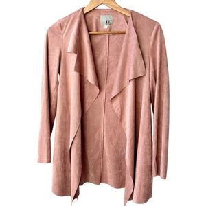 Excellent pre-owned condition. Elevate your wardrobe with this stunning luxe KUT from the Kloth from Nordstrom open-front cardigan in a beautiful dusty rose pink. Crafted from buttery ultra-soft faux suede material, this versatile cardigan offers both comfort and sophistication. Featuring a draped waterfall front, this lightweight layering piece is perfect for any season—ideal for dressing up a casual outfit or complementing a more polished look. The relaxed fit and timeless design make it a closet staple for modern, effortless style. Perfect addition to your capsule wardrobe.