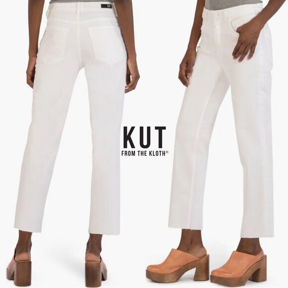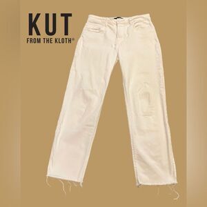 KUT From The Kloth Mom Jeans 8 Rachel High Rise Fab Ab Raw Hem White