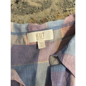 KUT From The Kloth Plaid Button Down Shirt L Sleeveless Pastel Summer Top