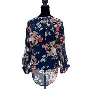 KUT From The Kloth Womens Floral Sheer Tunic Blouse Navy Multicolor Size Medium