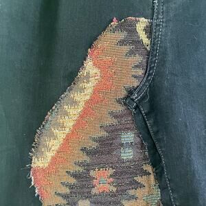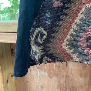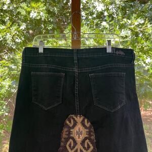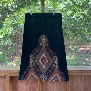 *This is a pair of Farrah baby boot cut jeans that have been repurposed as a skirt- sewn in with a southwestern style brocade fabric. Super pretty and one of a kind piece!