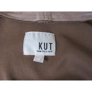 The KUT From the Kloth Jackie Faux Suede Moto Jacket in brown is designed for plus-size women. Made from faux leather, this motorcycle jacket features a stylish and edgy look. The brand, KUT from the Kloth, is known for its quality and trendy designs, making this jacket a fashionable choice for women looking to add a versatile piece to their wardrobe.