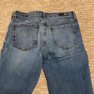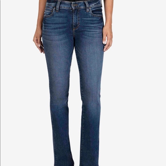 KUT from the Kloth signature cotton denim designed in a fabulous bootcut silhouette, this pair is a closet staple. Easily dressed up or down, this sleek pair is detailed with subtle fading giving them a lived-in flare.