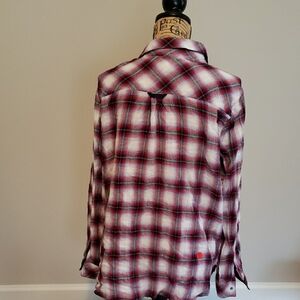 NWOT Stylish plaid shirt by KUT. Features a bold red design. Perfect for casual wear.