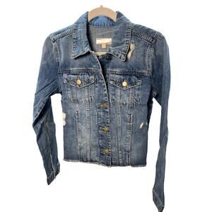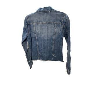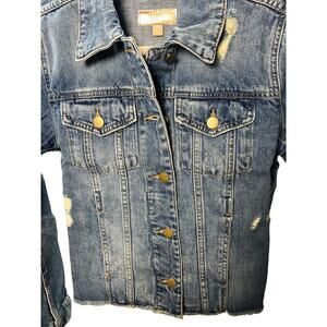KUT Women's Distressed Blue Jean Jacket, Denim Jacket, Fringed Hem, Size XS, NEW