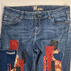 KUT Womens Jeans | Cropped Boho Upcycled | Hippie Festival | Burgundy Black | Si