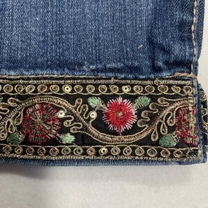 Embrace your inner free spirit with these showstopping crop jeans! Taking a pre-loved pair of Kut from the Kloth denim, they've been handcrafted into a festival-worthy work of wearable art. Size 14.