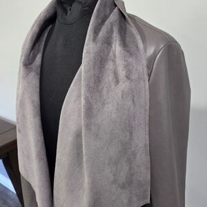 🐢 KUT from Kloth, Gray faux leather drape front jacket 🧥 Size Small VG