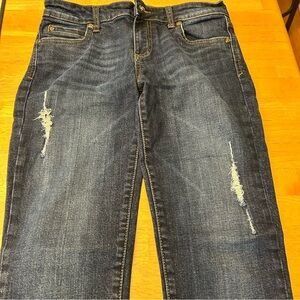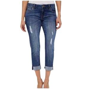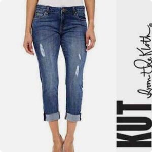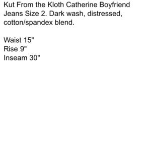 Cute distressed Catherine boyfriend jeans by Kut from the Kloth in dark rinse. Versatile- can wear rolled up or down. In excellent pre-owned condition from pet-free/smoke-free home.