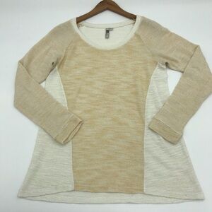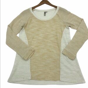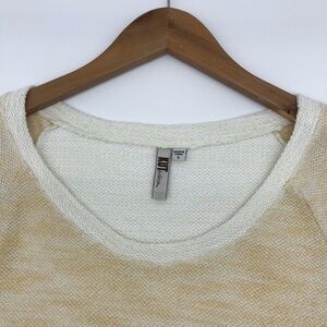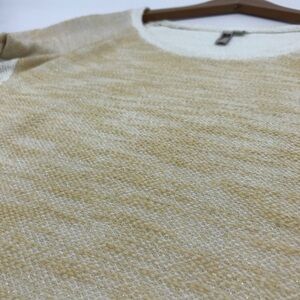White and cream color way with metallic shimmer gold fibers wove into the knit fabric.