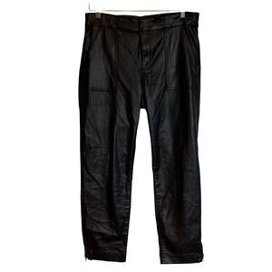 KUT from the Kloth Coated Reese Ankle Straight Pant Black Liquid Leather Size 14