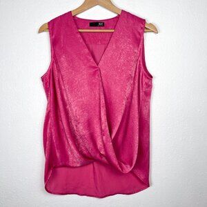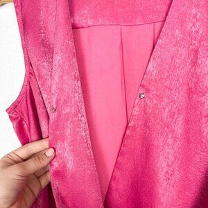KUT from the Kloth Hot Pink Satin V-neck Ruched Sz. M