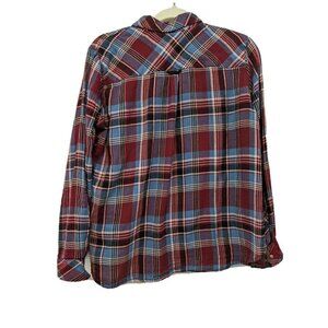 KUT from the Kloth Snap Button Up Maroon Blue Plaid Flannel Women's Sz Medium M
