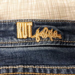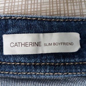 KUT from the Kloth Women's Catherine Slim Boyfriend Jeans Size 4 Cuffed Medium Wash Blue Denim. Good Pre Owned Condition. Waist 29 inches Rise 7 1/2 inches Inseam 25 inches.