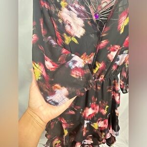 KUT from the Kloth chiffon floral carmen tiered 3/4 sleeve mini dress size 8