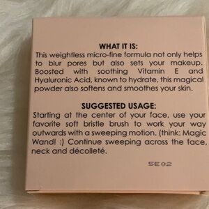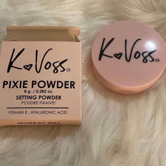 K.Voss Pixie Powder Setting Powder in pink. Features Vitamin E and Hyaluronic Acid.